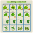 Based on the Squarefoot Gardening method, each square in the 4x4 grid represents 1 square foot of gardening space. This particular map corresponds to the perfect 4x4 pre-planned Spring Salad Bed Bundle of plants and seeds that we offer.